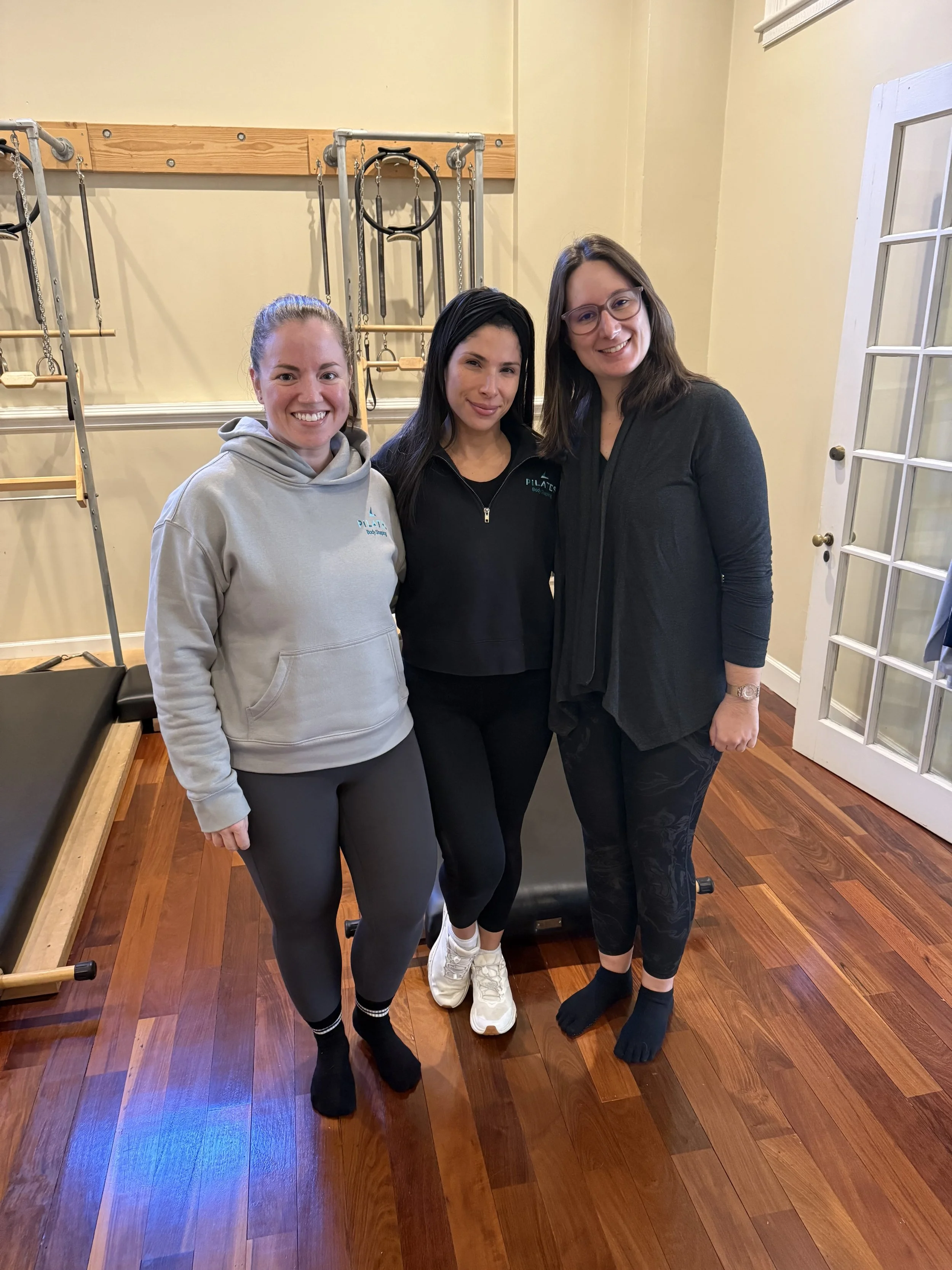 You may have noticed three young ladies around the studio, observing and possibly assisting in classes and lessons. Paula, Beth, and Tatiana (pictured below) are working hard towards earning their Romana's Pilates Certification! Thank you for your continued support and encouragement on their journey.